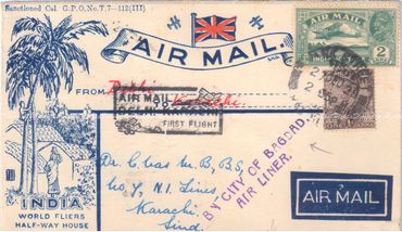 1929: First Flight by City of Baghdad Airline - Delhi - Karachi